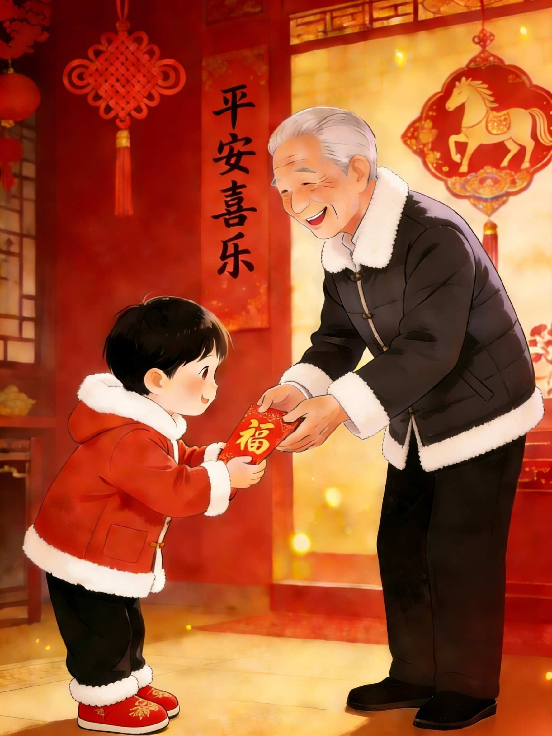 Som tiden går, selvom kobbermønter i rødt papir bliver til heldige penge i rødt papir, forbliver de inderlige ønsker om fred og sikkerhed uændrede.
