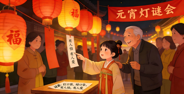 At gætte lanterne-gåder startede i Song-dynastiet, og det er en af de vigtigste og mest populære aktiviteter på lanternefestivalen. Lanterneejere skriver gåder på papirsedler og klistrer dem på de farverige lanterner. Folk stimler rundt for at gætte gåderne.